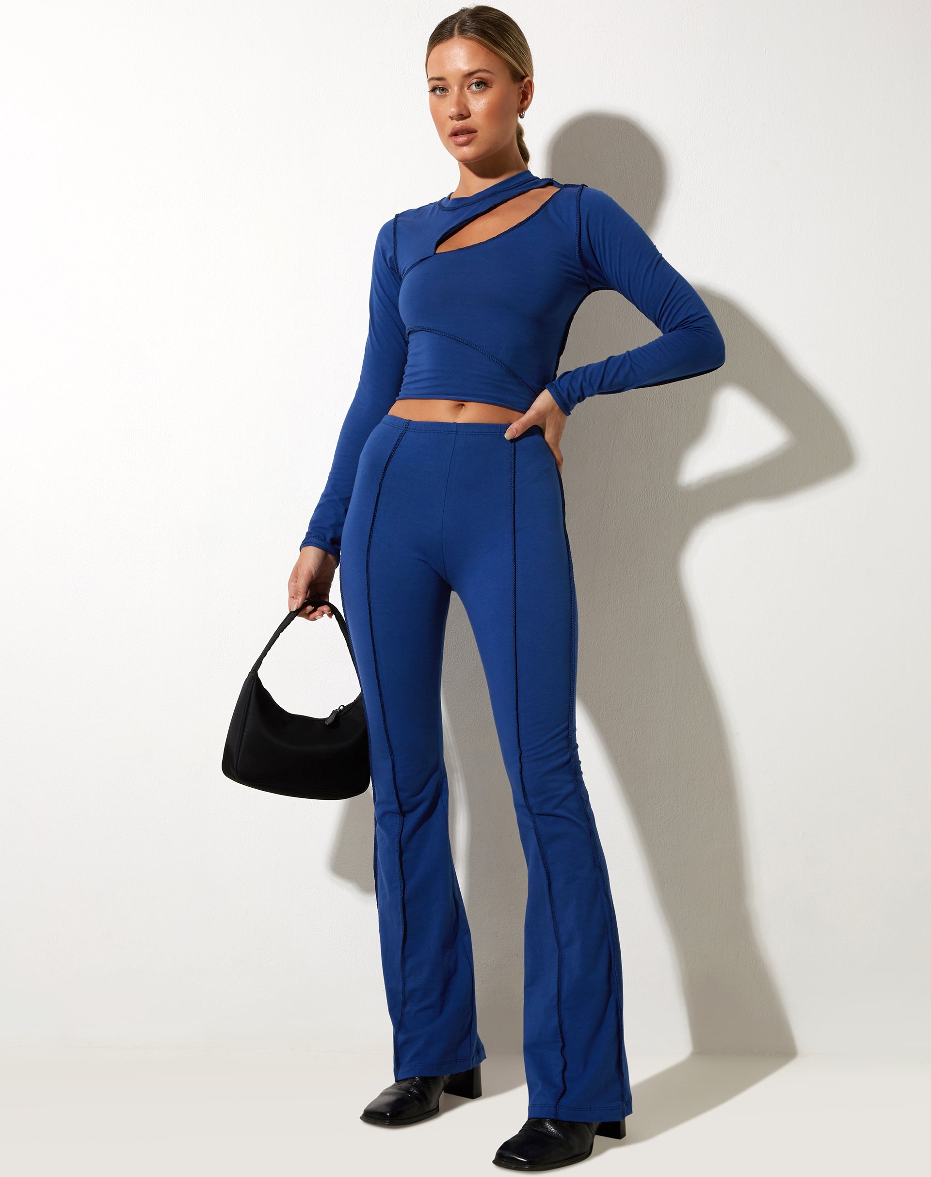 Flares are the new go to! Our Tais trouser. in lycra dazzling blue. features a high waist. contrast stitching and a flared leg design. Co-ordinate the look with our matching Marilau Top for the perfect OOTD.